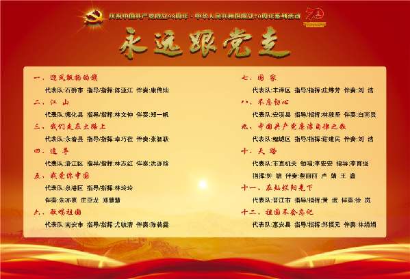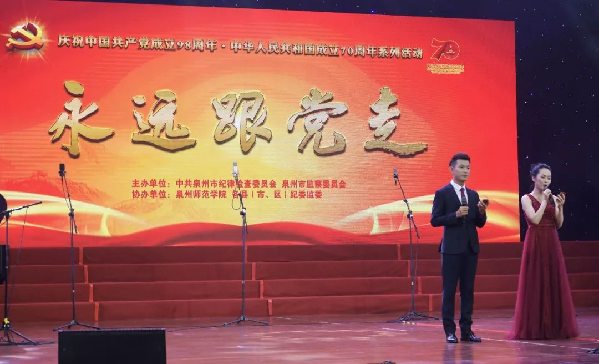 9月2日晚,由泉州市纪委监委主办,泉州师范学院、各县(市、区)纪委监委协办的泉州市纪检监察系统“永远跟党走”合唱比赛在泉州师范学院陈祖昌大礼堂举行。