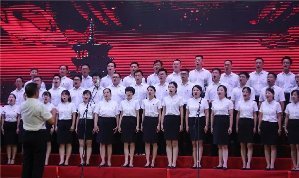《迎风飘扬的旗》《我们走在大路上》《中国共产党廉洁自律之歌》发出纪检监察干部奋发进取、砥砺前行的铿锵誓言。