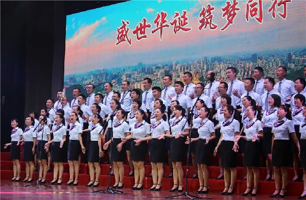 除了参赛队伍的精彩演出,当晚最后环节,全场起立齐声高唱《我和我的祖国》,激昂的旋律将活动推向高潮,大家用奋进嘹亮的歌声祝福伟大祖国繁荣昌盛!