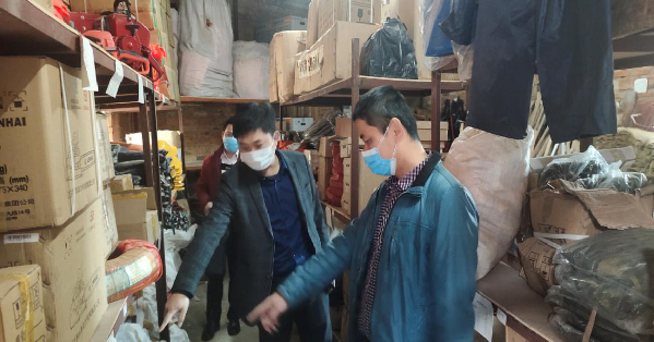 图为驻县市场监督管理局纪检监察组到东园社物资仓库检查物资储备情况