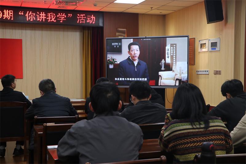 驻县委组织部纪检监察组注重加强监督单位的廉政教育,以组织观看警示教育片、参观教育基地等方式,推动廉政教育常态长效、走深走实,引导监督单位党员干部守牢廉洁底线。图为近日,该纪检监察组组织系统干部集中观看中纪委反腐专题片《一步不停歇 半步不退让》。