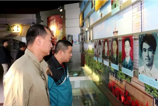 驻足观看烈士简介,缅怀烈士。