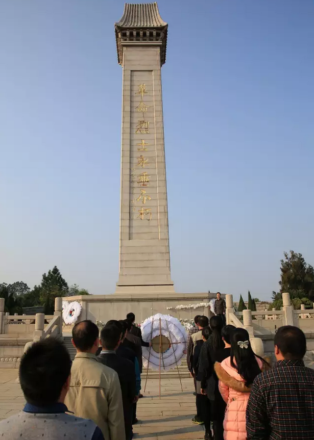 绕行革命烈士纪念碑一周。