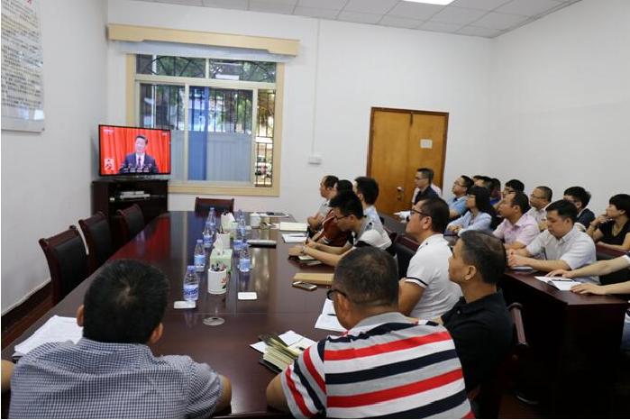 图为县纪委监察局、县委巡察办全体干部集中收看党的十九大开幕会