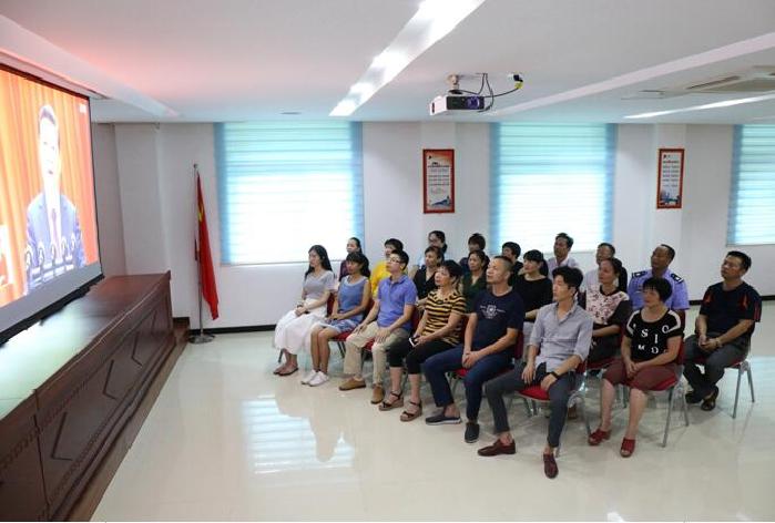 图为驻县市场监管局纪检组干部与驻在单位干部一起收看党的十九大开幕会