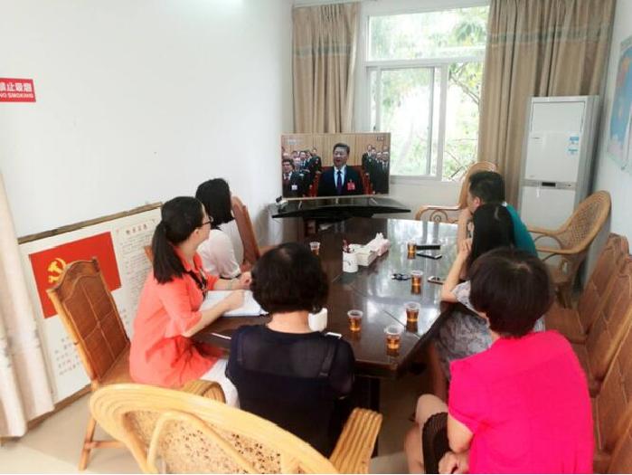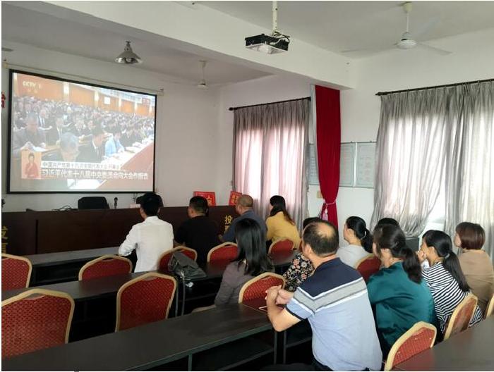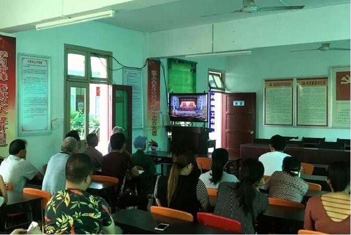 图为黄塘镇纪检干部与省吟村党员干部一起收看党的十九大开幕会