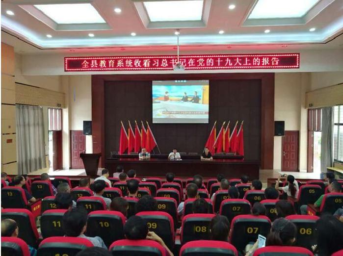 图为驻县教育局纪检组干部与驻在单位干部一起收看党的十九大开幕会