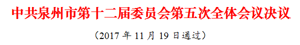 中国共产党泉州市第十二届委员会第五次全体会议,于2017年11月19日在泉州召开。会议由市委常委会主持。会议讨论了市委常委会工作报告,听取和讨论了市委书记郑新聪所作的报告。