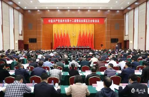 19日,中共泉州市委十二届五次全会召开。会议主要任务是,深入学习贯彻党的十九大精神,按照省委十届四次全会部署,进一步组织动员全市各级党组织、广大党员和干部群众,高举中国特色社会主义伟大旗帜,坚持以习近平新时代中国特色社会主义思想为指导,不忘初心,牢记使命,决胜全面建成小康社会,主动融入新福建建设大局,推动党的十九大精神在泉州落地生根、开花结果,奋力开创现代化泉州建设新局面。