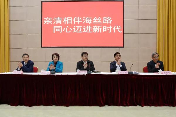 活动开始前,与会人员在“亲清相伴海丝路 同心迈进新时代”承诺墙上签字。