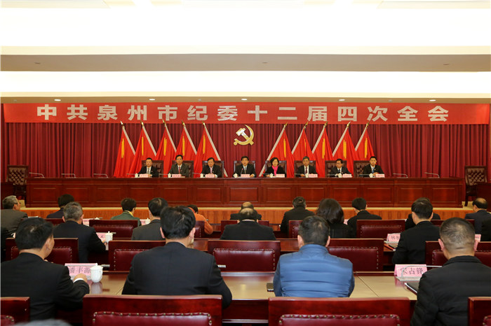 中国共产党泉州市第十二届纪律检查委员会第四次全体会议,于2019年1月22日在泉州举行。会议传达学习了十九届中央纪委三次全会、省纪委十届四次全会精神,特别是习近平总书记、省委书记于伟国的重要讲话精神,听取了市委书记康涛的讲话,审议并通过了市委常委、市纪委书记、市监委主任游宇飞代表市纪委常委会所作的《牢记政治使命 忠实履行职责 为推动高质量发展落实赶超提供坚强纪法保障》的工作报告。