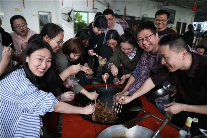 “自己做的饭最香!”劳逸结合,吃饱了才有力气学。(张江杉 摄)