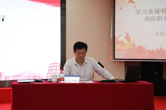 图为市监委委员黄志强作预防职务犯罪专题讲座。