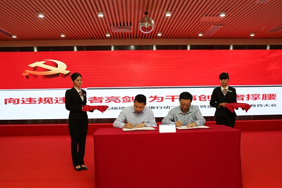 图为市纪委常委、秘书长、市监委委员郭宁代表市纪委监委与中化泉州石化纪委签署《廉洁共建协议》。