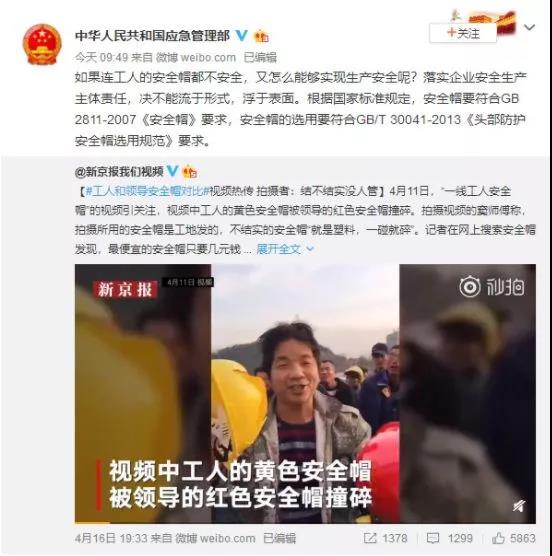 生命安全面前没有小事,“保命钱”不能省。无论是在什么环境下作业,劳动者的防护安全都应该到位、有效。对于视频反映的问题,4月17日上午,应急管理部官方微博转发视频并表示:“如果连工人的安全帽都不安全,又怎么能够实现生产安全呢?落实企业安全生产主体责任,决不能流于形式,浮于表面。”相关责任部门必须认真对待,及时查找病灶、亡羊补牢,决不能事不关己、一看了之,任由这些问题蔓延下去,最终导致劳动者伤身、更伤心。
