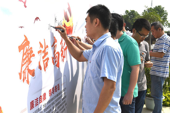 鲤城高新区党工委组织党员干部开展“廉洁高新•你我同行”承诺活动。林升/摄