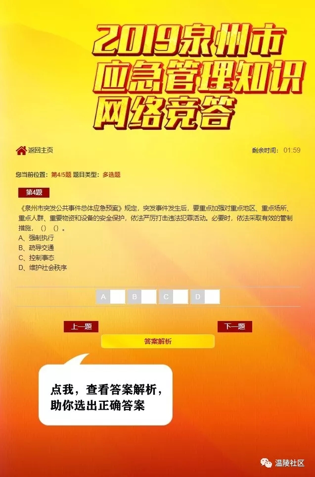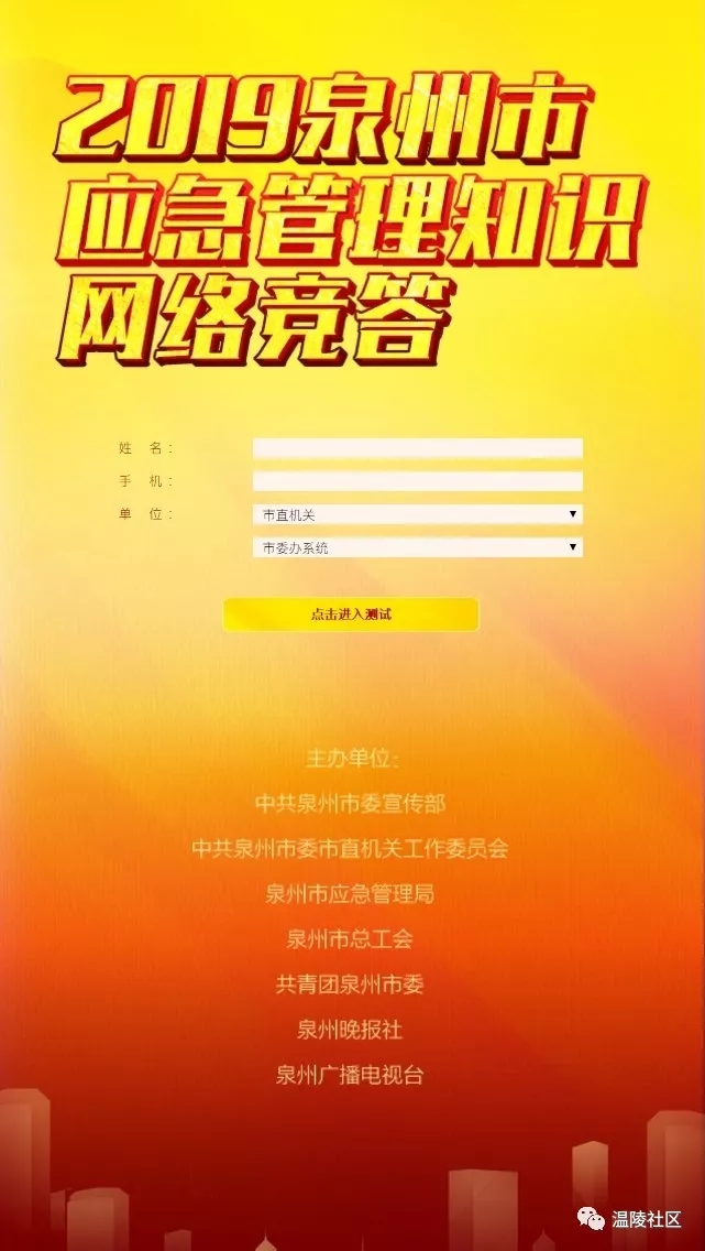 2、通过“泉州网”“泉州机关党建”“泉州应急管理”“泉州市总工会”“青春泉州”等官方微信公众号活动菜单进入答题。