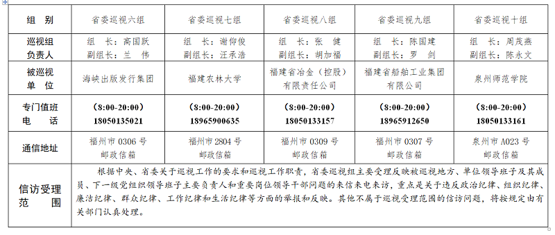 十届福建省委第六轮第一批巡视展开 13个巡视组进驻地方、单位巡视