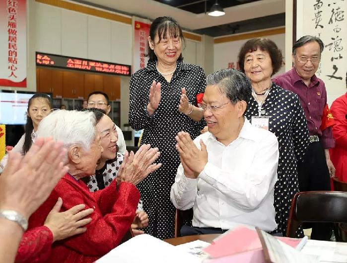 5月20日至22日,中共中央政治局常委、中央纪委书记赵乐际到湖北省调研。这是5月22日,赵乐际在武汉市百步亭社区调研了解基层党风廉政建设情况,与基层干部群众面对面交流。新华社记者 丁海涛 摄