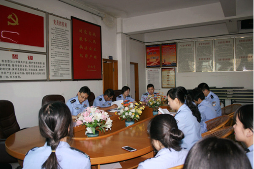 图为县公安局领导到出入境管理大队开展集体廉政谈话