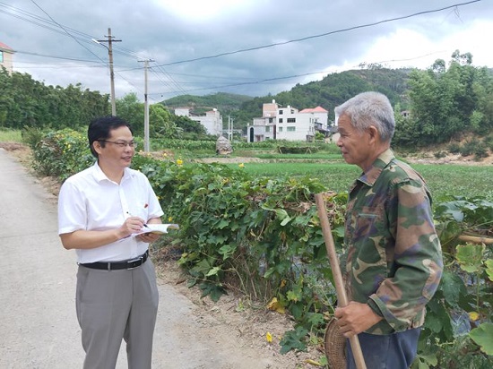 图为8月1日,黄振寿(左)在前庄村看望贫困户。