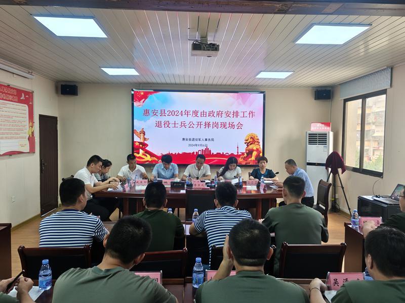 驻县委政法委纪检监察组全程监督退役士兵安置工作,认真审核安置选岗工作程序,对选岗各个环节严格把关,保障退役士兵安置工作在阳光下运行。图为驻县委政法委纪检监察组干部全程监督惠安县2024年度由政府安排工作退役士兵公开择岗现场会。