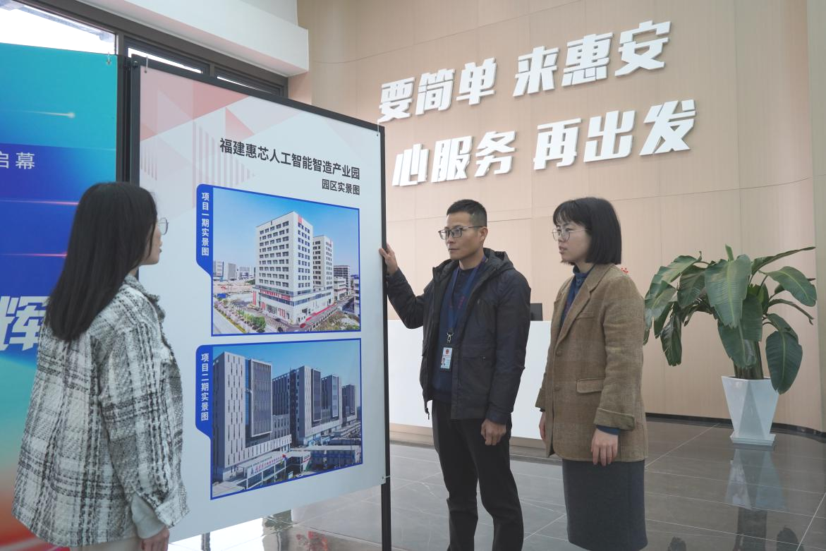 图为惠安县纪检监察干部在惠芯人工智能智造产业园走访了解涉企政务服务情况(郑颖 摄)