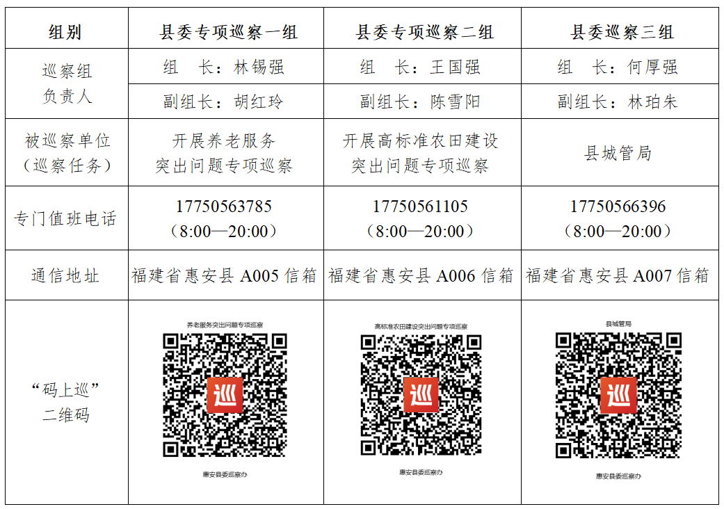 县委巡察组主要受理反映被巡察党组织领导班子及其成员、其他县管干部、下一级党组织主要负责人和重要岗位领导干部的来信来电来访,重点是关于违反政治纪律、组织纪律、廉洁纪律、群众纪律、工作纪律和生活纪律等方面的举报和反映;县委专项巡察组主要受理反映养老服务、高标准农田建设两个领域的突出问题和违纪违法问题线索,推动群众身边不正之风和腐败问题集中整治走深走实。其他不属于巡察受理范围的信访问题,将按规定由有关部门认真处理。巡察组受理信访时间截止到2026年5月20日。